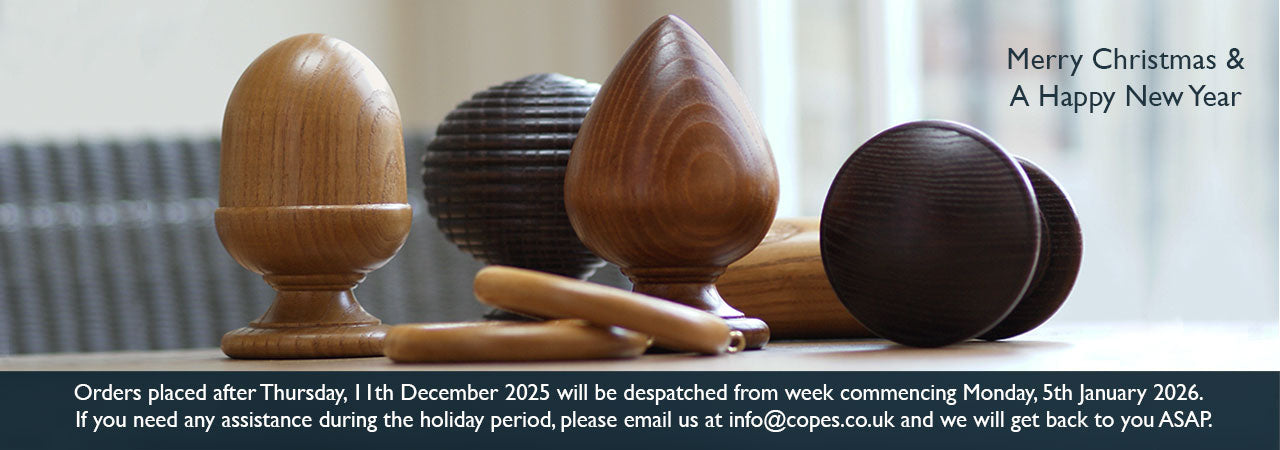 Our wooden curtain poles at Cope and Timmins are made to order using traditional skills. We may not have the biggest collection of wood curtain poles, but we offer timeless designs, quality materials and knowledgeable support. We are a wood curtain pole specialist, with all products designed, made and finished in our North Yorkshire workshop. We pride ourselves in sourcing the highest quality wood from sustainable sources and believe this is reflected in the finished product.