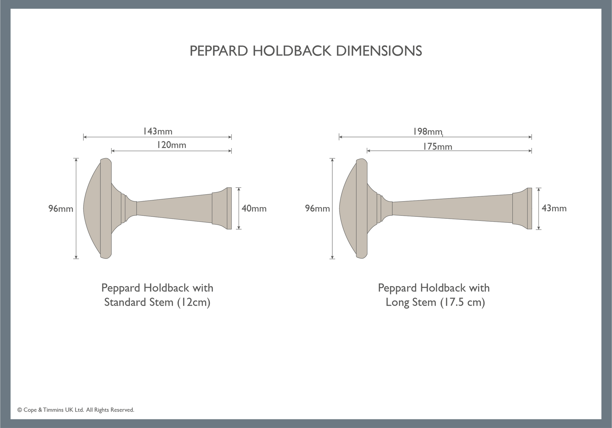 Shown here in our natural ash finish, the Peppard holdback complements all pole sets in our collection. All our wood holdbacks are turned from solid ash and hand finished, using traditional techniques.